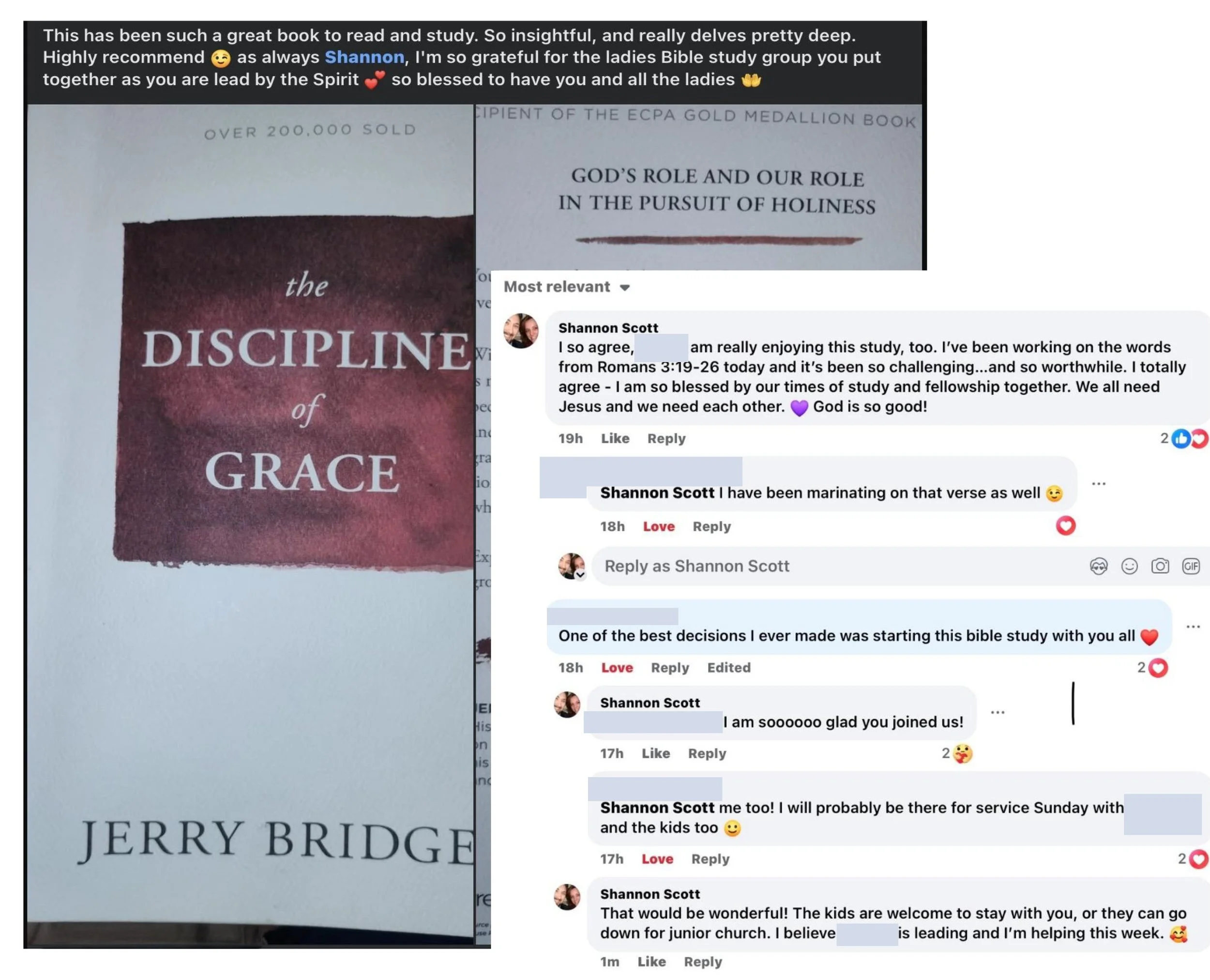 The first two pictures are screenshots of a social media post made by one of the participants of Shannon's women's Bible studies that have led several families to the Lord & to the church in the years she's taught so faithfully here. If you read the initial comment, then the interaction that follows, you'll see we're expecting one more family to lean in toward Jesus more because you've sent us here to spread His Word. Praise God!