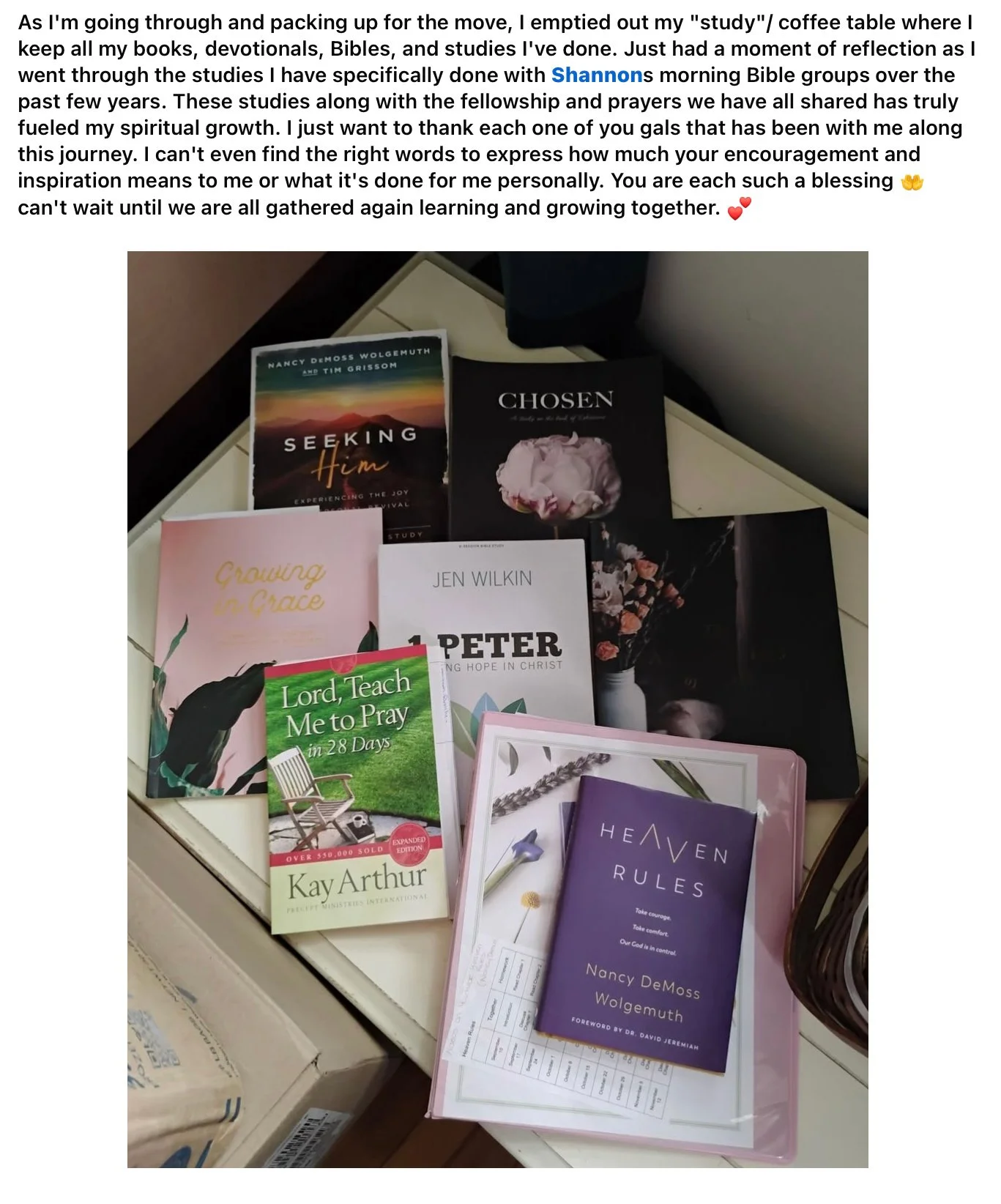Pastor Dave’s note: Our 1st Sunday here, there were fewer than 20 souls present. Just 10 days ago, on Easter Sunday, we worshipped with 41 voices praising God! Shannon’s Bible study for women this past Tuesday had 19 attending in the morning & 7 in the evening!! The women of our church bring their friends & many have been introduced to our church that way, including the woman who sent us the note below. They split into morning & evening groups because they outgrew the space available! Below is a screenshot of a recent Facebook post made by one of the women Shannon has been discipling for more than 3 years now.